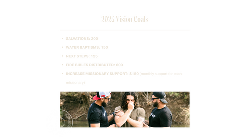 Funds given to Kingdom Builders will go towards the specific ministries and projects supported within the scope defined in our brochure and help meet the goal of $300,000 in 2025. If you are already giving to one of those ministries we would ask that you continue to support it through Kingdom Builders.